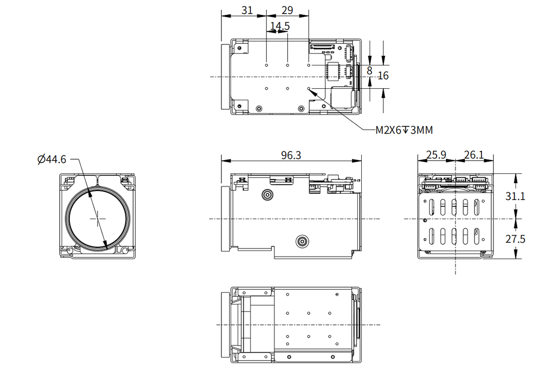 Sjónsvið | H: 61,2 ° ~ 2,2 °, V: 36,8 ° ~ 1,2 ° |